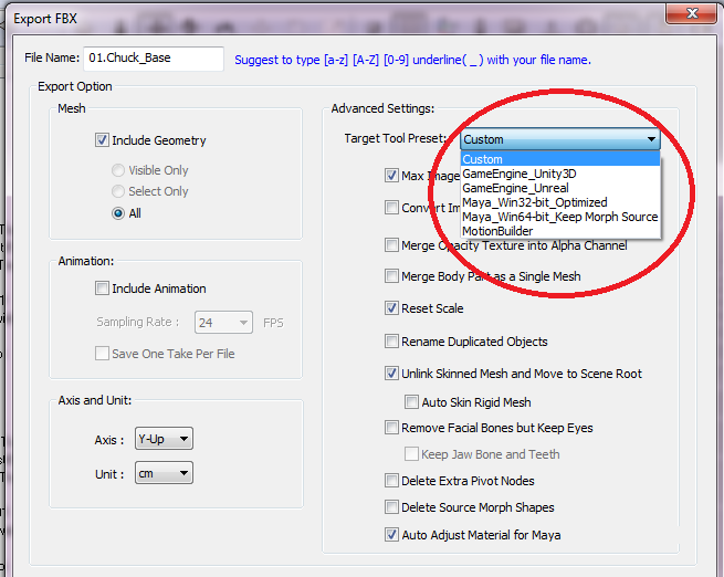 Hi mailtophoo :)/ with the assumption that you have the "pipeline" version of 3Dxchange ( because it's the only version that exports fbx ) - it's strange that you do not have that preset because it's automatically installed in your system with the software - aside from just assuming that your installation is missing files, thus may need a fresh installation, do you have the latest updates installed - as that may be a factor. Cheers!