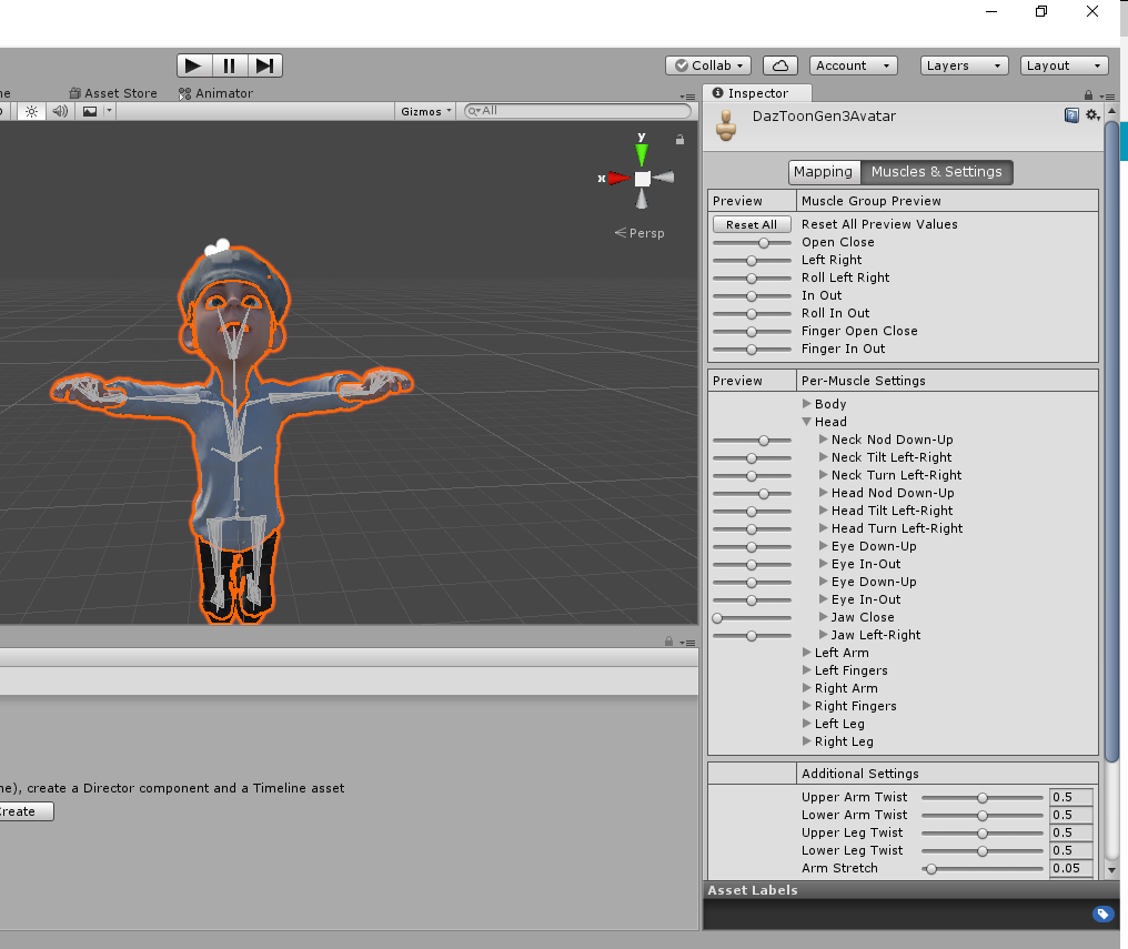My animation works with other imported Unity characters but not Gen 3 or 8 - it leaves the mouth open. When I go to configure the CC_Base_JawRoot to another bone - after I click Done & Apply - it reverts back to the CC_Base_JawRoot?! (see image) When I go to Muscles & Settings, I can use the Open close slide bar under Muscle Group Preview and but when I try to close the mouth using Jaw Close under the Per-Muscle Setting - nothing happens?! (see image).