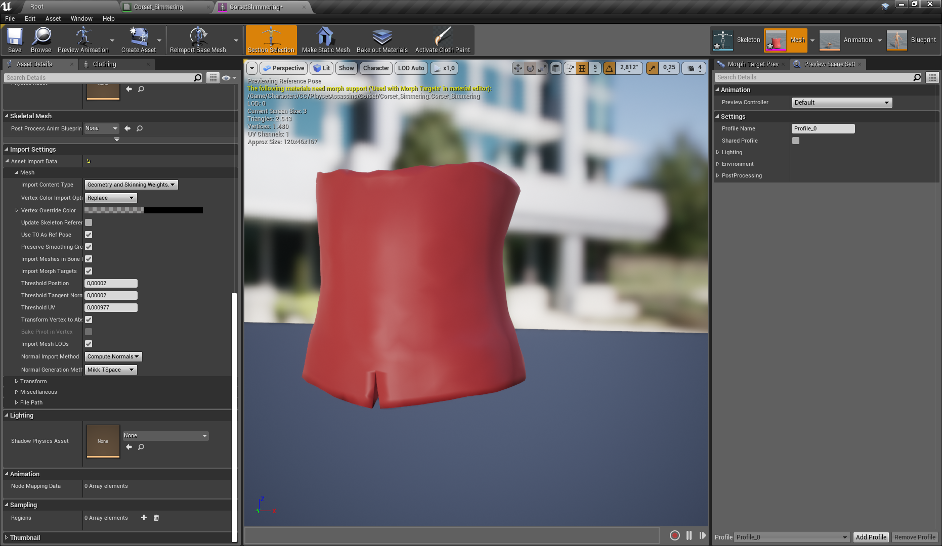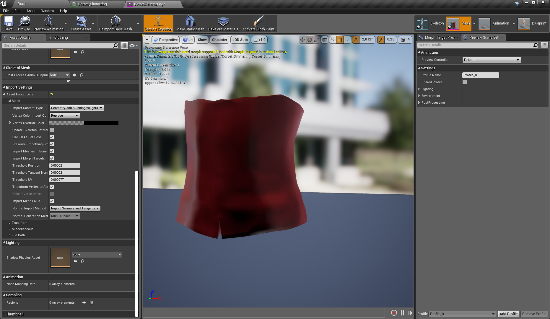 I have three problems with exported FBX. 1. When the models are exported to anFBX file (especially with clothes), the normals / tangents are apparently notwritten correctly. I tried the export profile "Unreal" and"Maya" and from iClone and Character Creator. No matter whether Iimport the FBX file into Maya or UE4, I have a "shimmering" surface. See "WrongNormals1-7". The shimmer has nothing to do with theimported material. I can also create and use a simple material in Unreal.See "ImportedNormalsSimpleMaterial1-3". If I do not import thenormals and tangents when I import them into Unreal, but have them computed byUnreal, the problem is not. But the calculated normals can sometimes beunsuitable. 2. Also under Unreal and Maya, there isan error in the depth sorting of the polygons after an export if the materialis translucent. The problem cannot be solved by recalculating the normals inUnreal. So it doesn't seem to be the problem. A workaround is material opaqueor masked. But sometimes translucent is also desirable because e.g. looksbetter on hair. The problems do not depend on the manufacturer of the models.It occurs with base models as well as with clothing. See Imported with opaque material and computed normals, Imported with opaque material and normals, Imported with translucent material and normals. 3. The clothing / armor of e.g. PlaysetAssassins and Paladin look very good on the website, but in the CharacterCreator and especially in Unreal the low resolution doesn't make a goodimpression. See "ResolutionLow1Orig". The artist's models are surelymade with higher resolution textures. Why is not at least a 2048 resolution (or4096) offered as -additional- downloadable packages? I was able to achieve animprovement in close-ups (dialogue scenes) through layered material in Unreal,but especially the normal maps in low resolution reduce the overall quality. See "ResolutionLow2Layered". I'm more of a developer than an artist, butis there any other easy way to generate highres normal maps from thehighres-polygon models? The easiest thing would of course be to give thecustomer the high textures straight away. Scaling down is better than scalingup. Within the Character Creator and iClone you can work with low textures butwhen exporting, more resolution should be possible or I only have external ZIPpackages with the highres textures that I can import into Unreal or Maya.