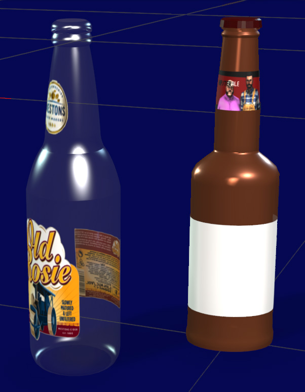 @amperfox, @Lord Ashes and @mark. Thanks for your responses. The original image I am using to replace the label is png, and after a slight tweak in Photoshop was saved as png - I have also tried it using jpg with a mask. The png created its own opacity file. Now, everything TELLS me it is png but if I use the opacity the image goes, leaving a black or opaque square. This would appear to be a ghost of the label I am replacing. If I delete the label then the bottle has a totally see-through square, so somehow the bottle was made with this square in it (??Why??), yet I can see no method of how the bottle was made, how to fill this square in etc. So, basically, I am putting on the label correctly, your help confirmed it, but now there is this oddity of a square that should not be there!
