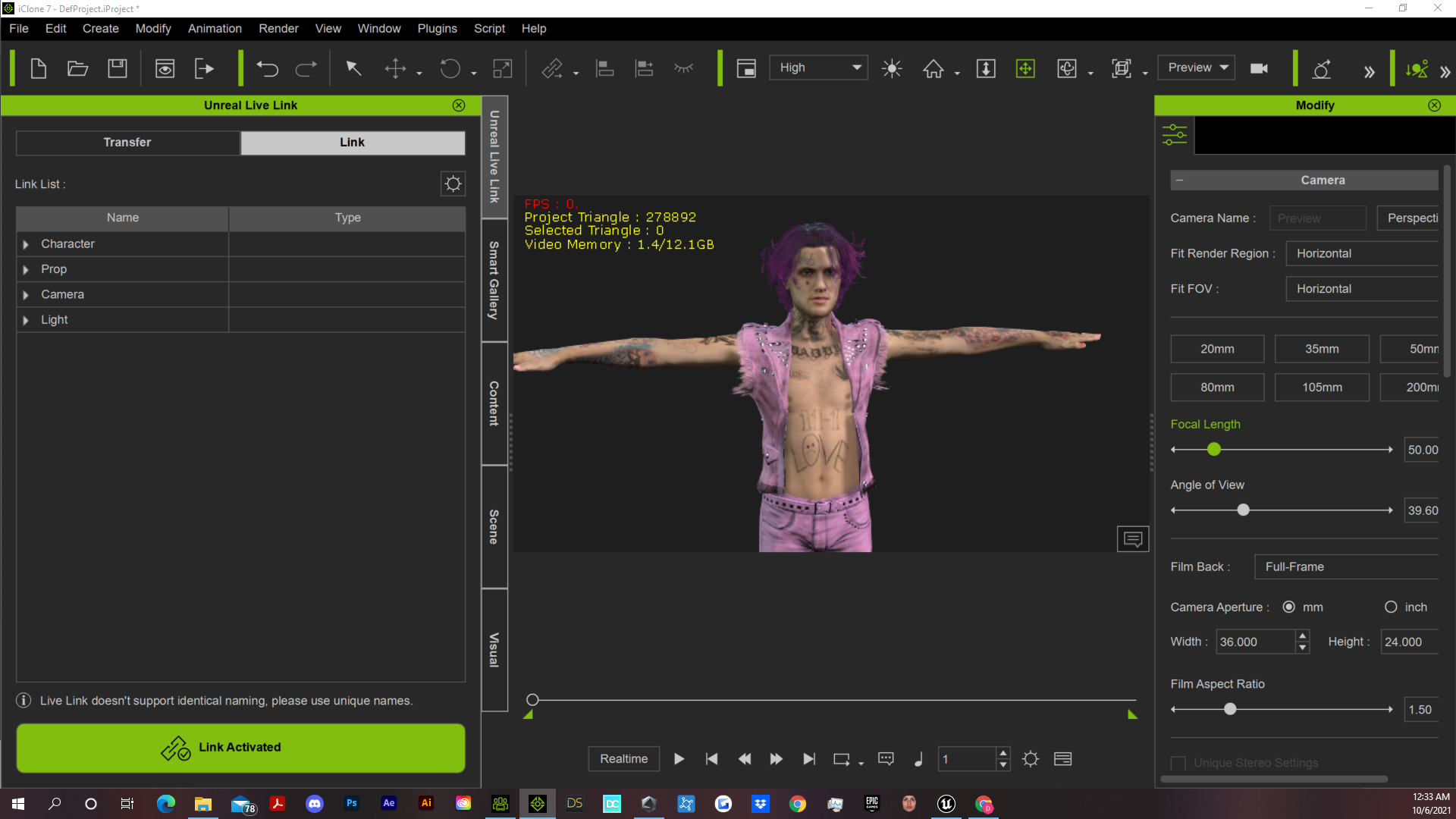 Im transferring my character from iClone to Unreal using the live link. Once its completely transferred over to unreal the jacket and hair are missing. The jacket doesnt even transfer over. The hair looks transparent and nothing like what is in iclone. I attached screenshots of the character in iclone and the final product transferred over to unreal.