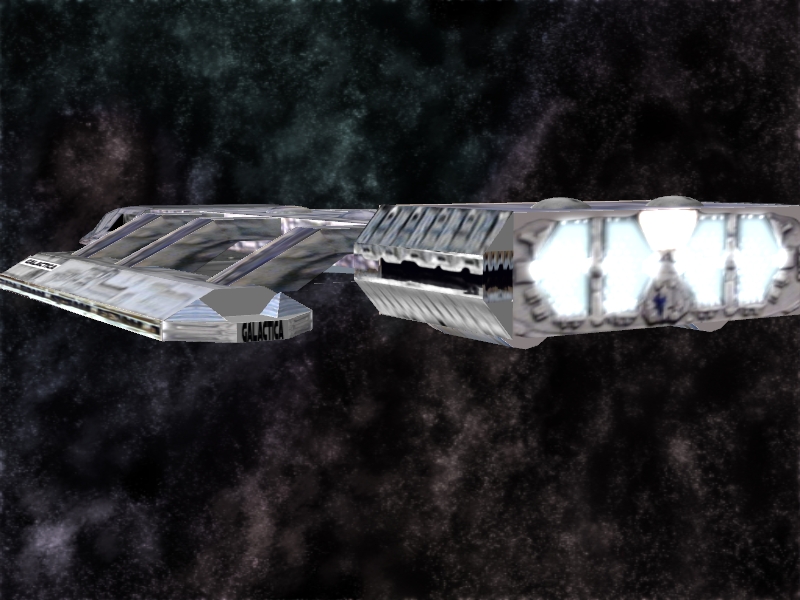 Because of certain shape limitations in iClone, I had to take a couple minor liberties, but I think it worked out for the best. I even decided to get a little Star Trek-ish, and put the Galactica's name on the aft landing bays as well as the sides of the ship. (It's a fanboy thing...LOL!)