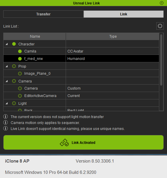 iClone 8.5 live link to UE 5.4 no facial info transmitted