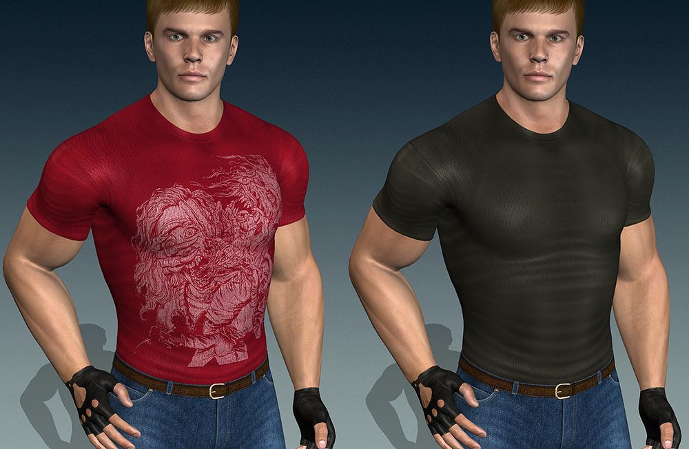 Pullover model has shirt with collar element in neck zone. The pack will include opacity mask for hiding "build in" shirt (as well as mask for hiding sleeves). So You will be able to combine pullover with T-Shirt from LowerPlus models if You wish.