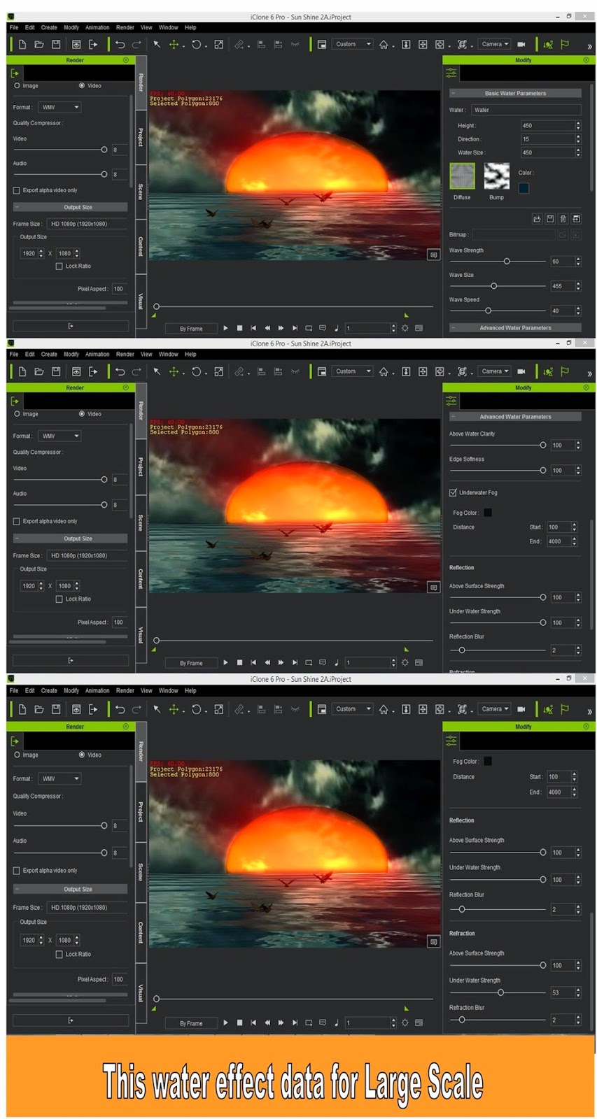 Water effect iclone 6 .... on Large Scale "Statis Camera" (Large sea needed )
