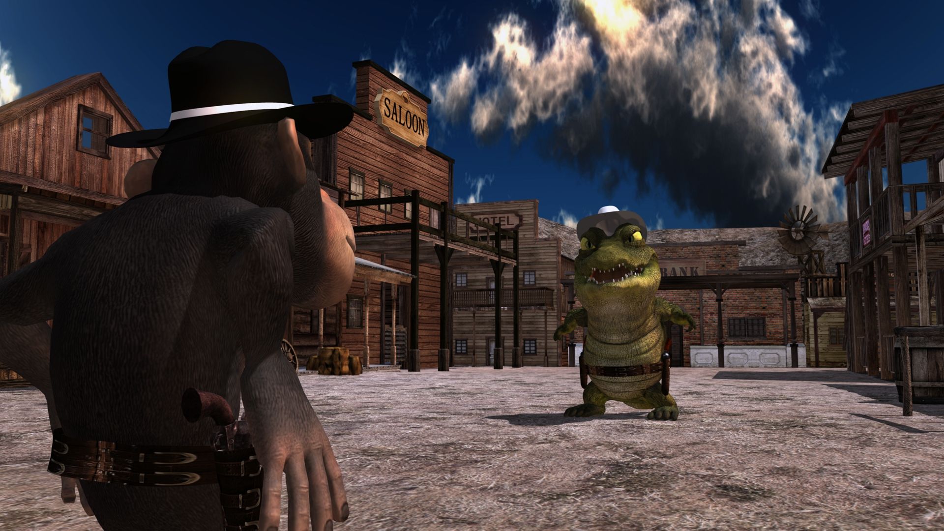 heh heh working on it. I only had few hours to put that scene together last night. Plenty more to come, including some physics constraints for the hat and gun holsters so they move more naturally. ;)